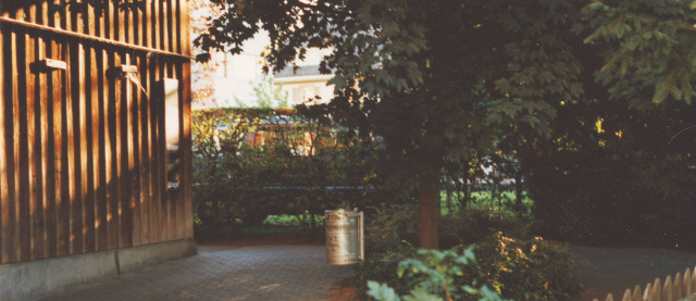 Schober, Weg in Betonstein, Abfallkübel