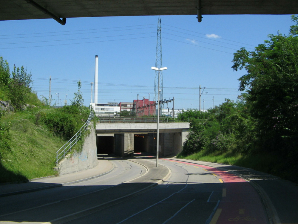 Rothausstrasse, rechts steht ein Fabrikationsgebäude