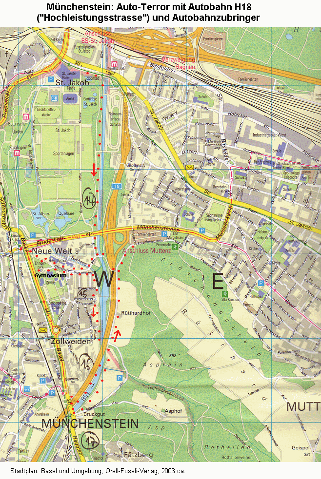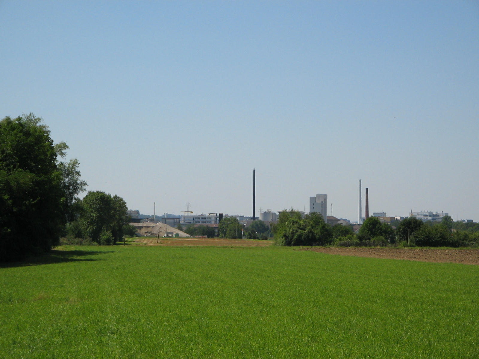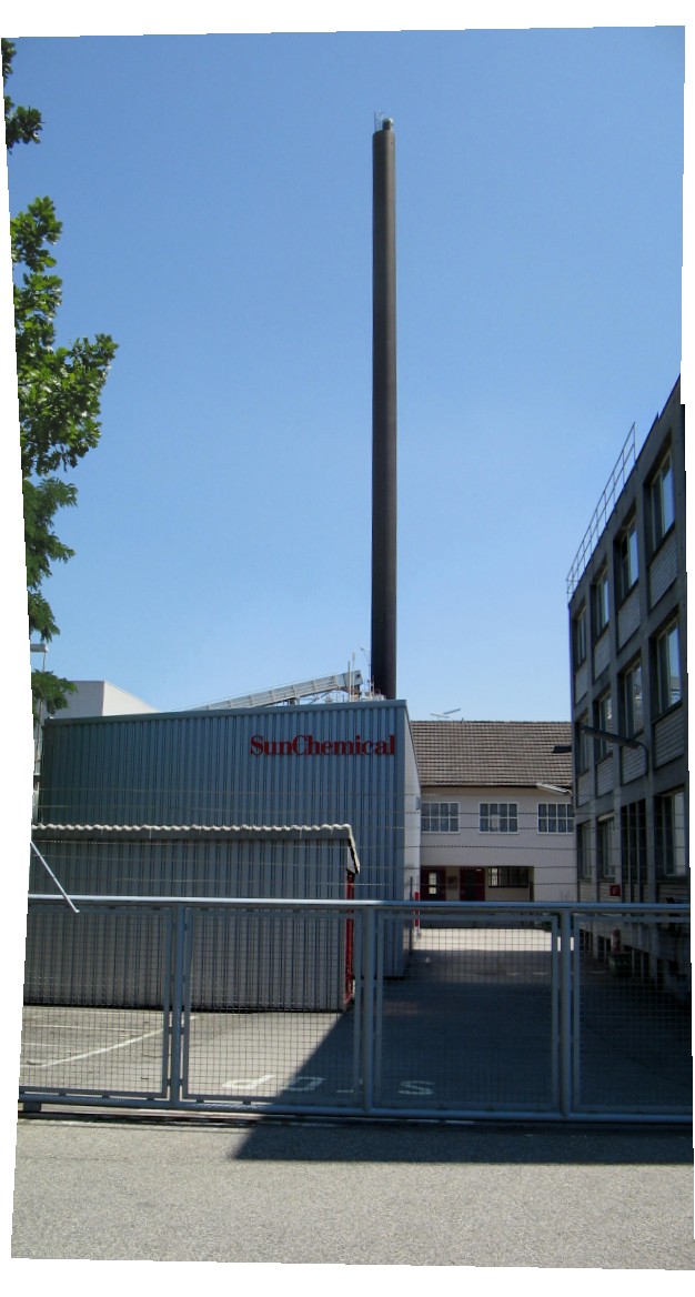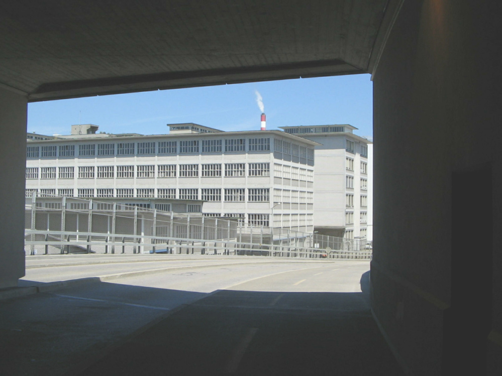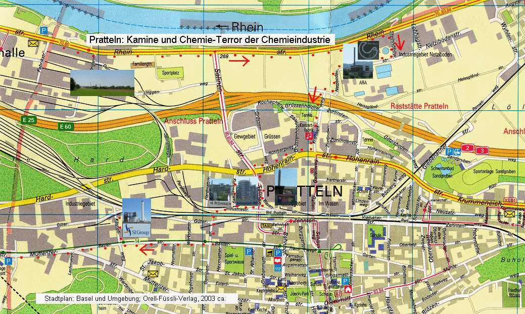 und den Produktionsgebäuden der Giftfirmen Ciba und