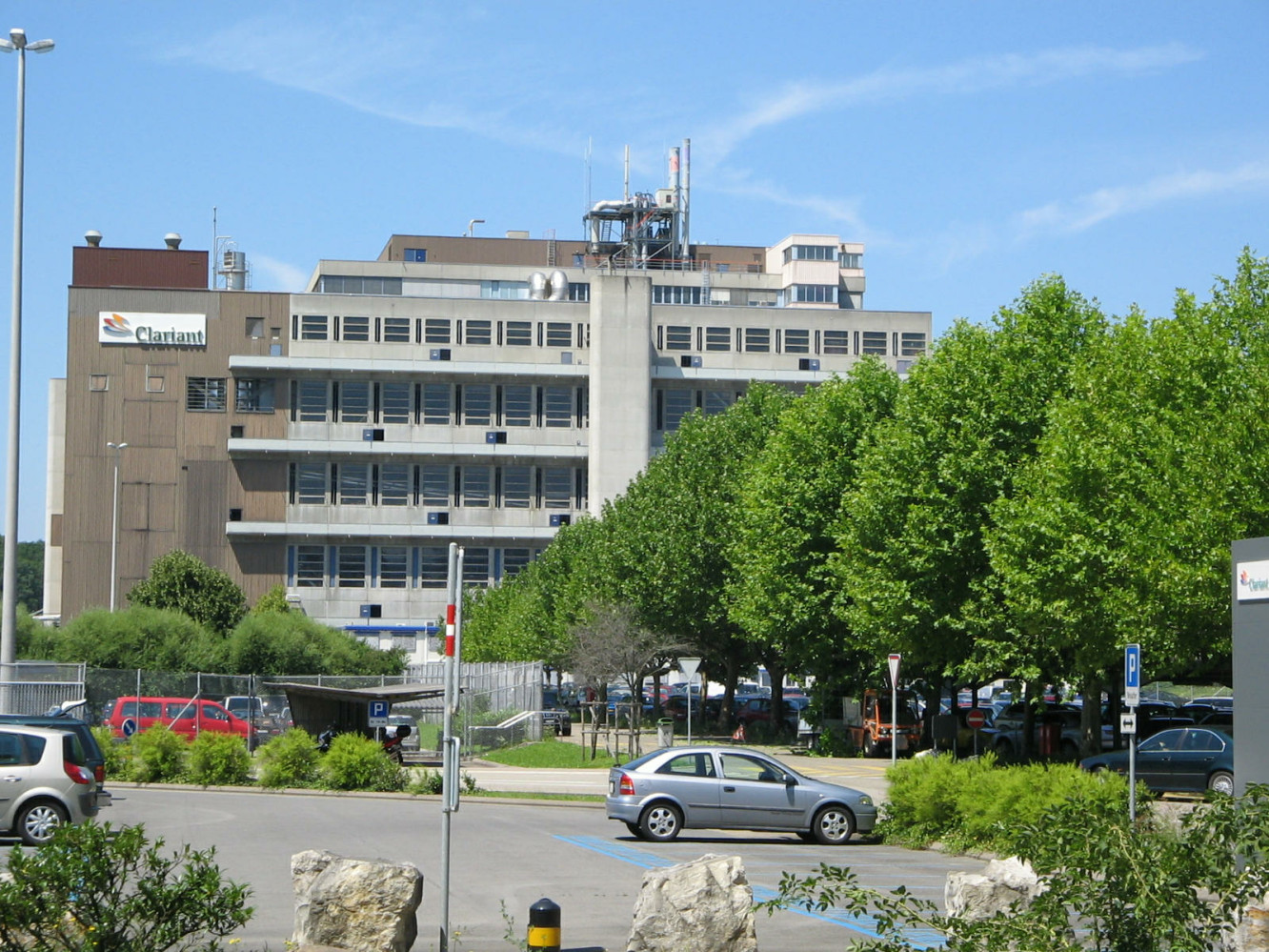 Gebäude mit Clariant-Logo danaben, Nahaufnahme