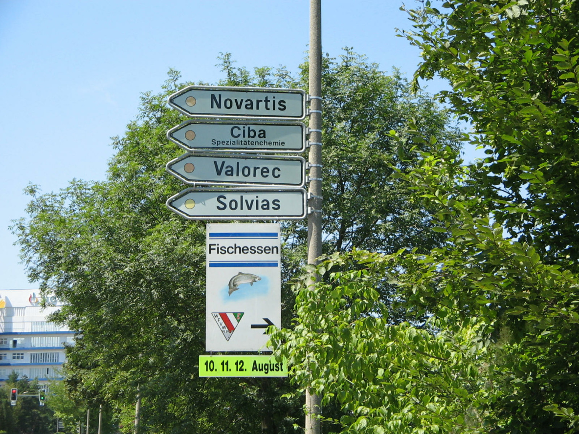 Fabrikstrasse, Wegweiser zu den Giftfirmen SF Chem
