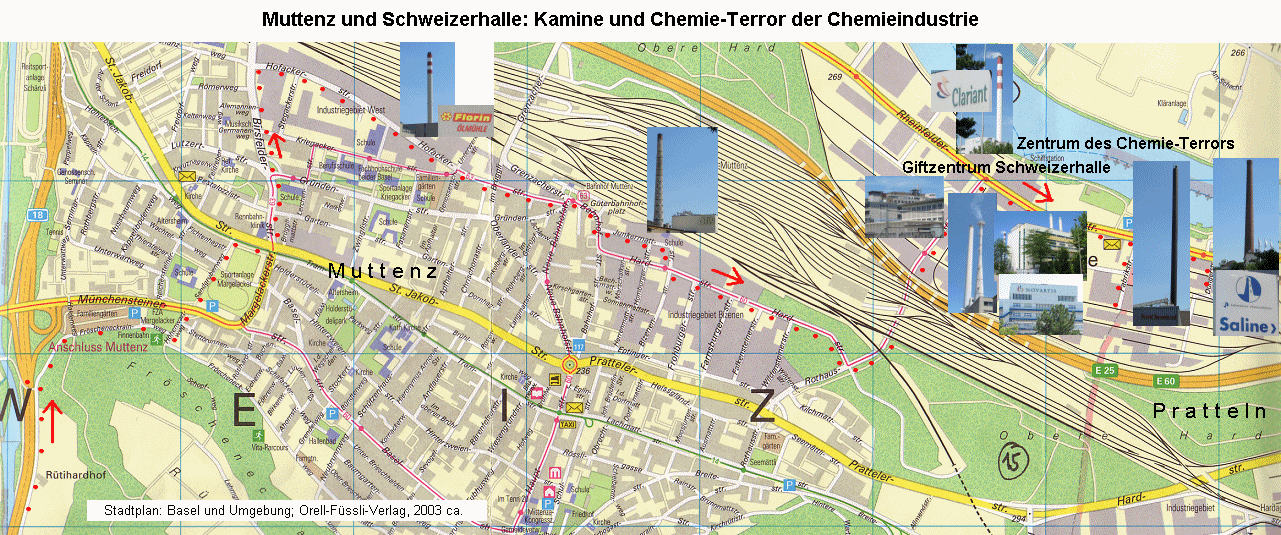 Produktionsgebäuden der Giftfirmen Ciba und Novartis