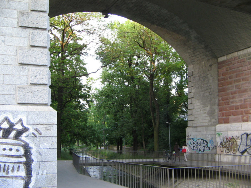 Basel, Viaduktstrasse, Viaduktbogen mit dem Bach Birsig