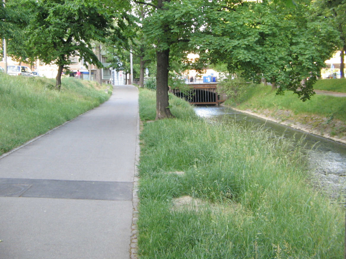 ... auch wenn der Birsig hier nur noch ein Kanal ist (2007), der auf seine Renaturierung wartet.