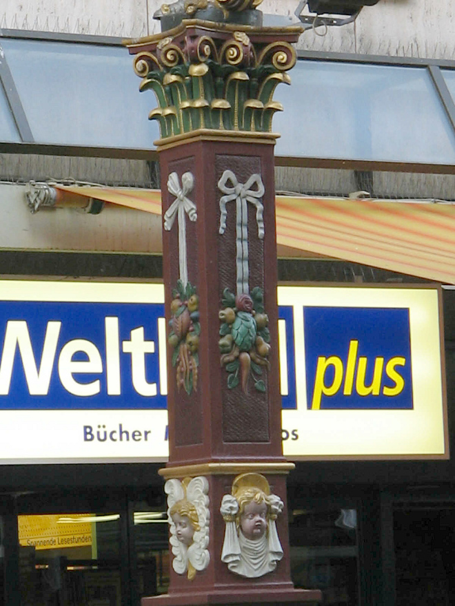 Der "Webern-Brunnen" von 1672 (Kopie 1925) [6] ist eine der wenigen Erinnerungen an die "alte" Steinenvorstadt, wie sie früher ausgesehen hat, etwa wie die Spalenvorstadt. Die Steinenvorstadt muss also hervorragend ausgesehen haben. Es isch e Schand...