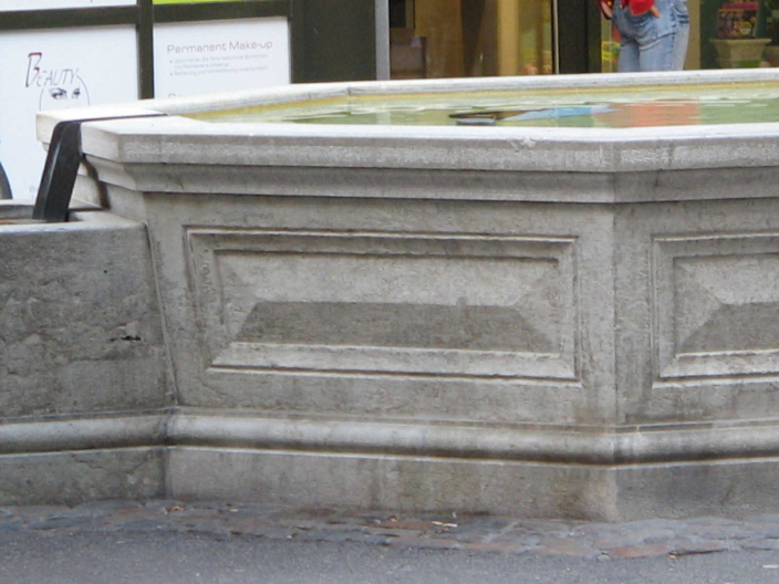 Basel, Steinenvorstadt, Webern-Brunnen, Detail der Einfassung