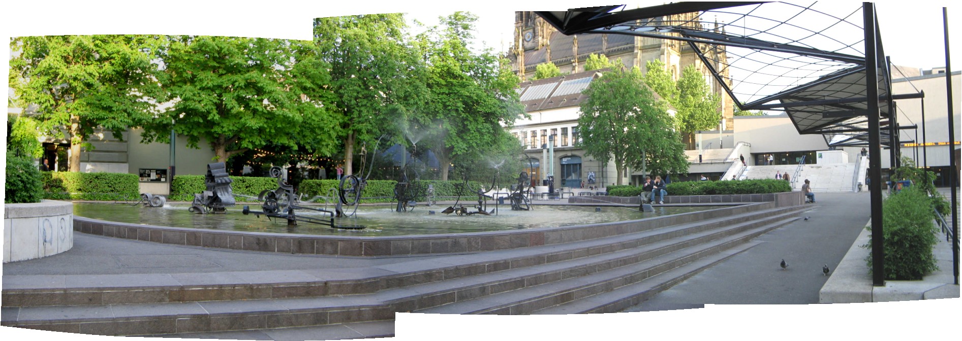 Basel, Tinguelybrunnen beim Stadttheater, Panoramafoto