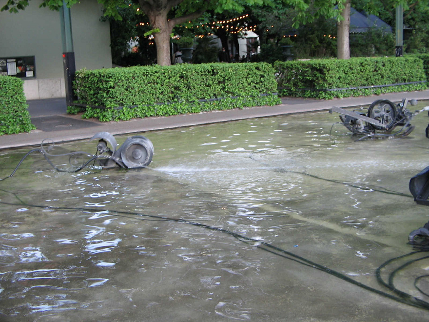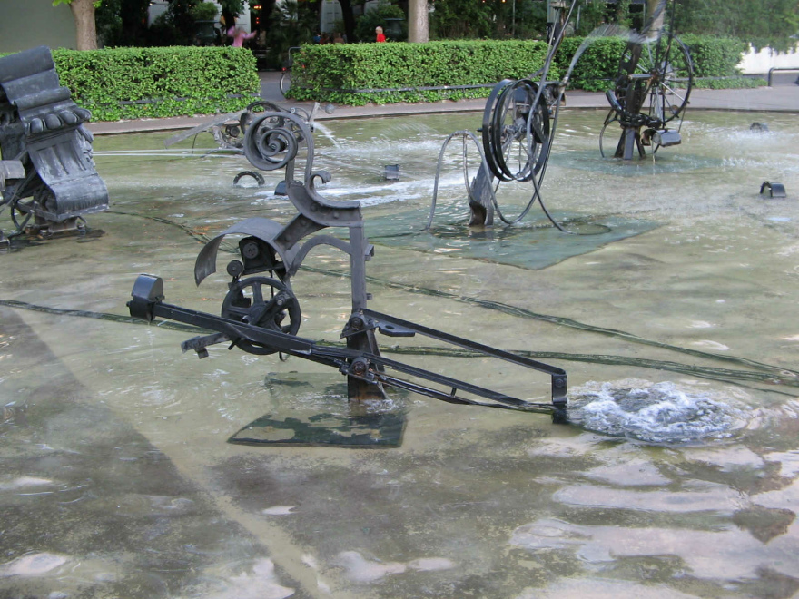Sitzgelegenheiten um den Tinguelybrunnen gibt es viele, nur Trinkwasser gibt es keins. Da fehlt ein kleiner Trinkwasserbrunnen. Den haben die Architekten nicht vorgesehen, denn nebendran sind Restaurants, die Getränke verkaufen wollen. Der Profit verhindert einen Trinkwasserbrunnen...