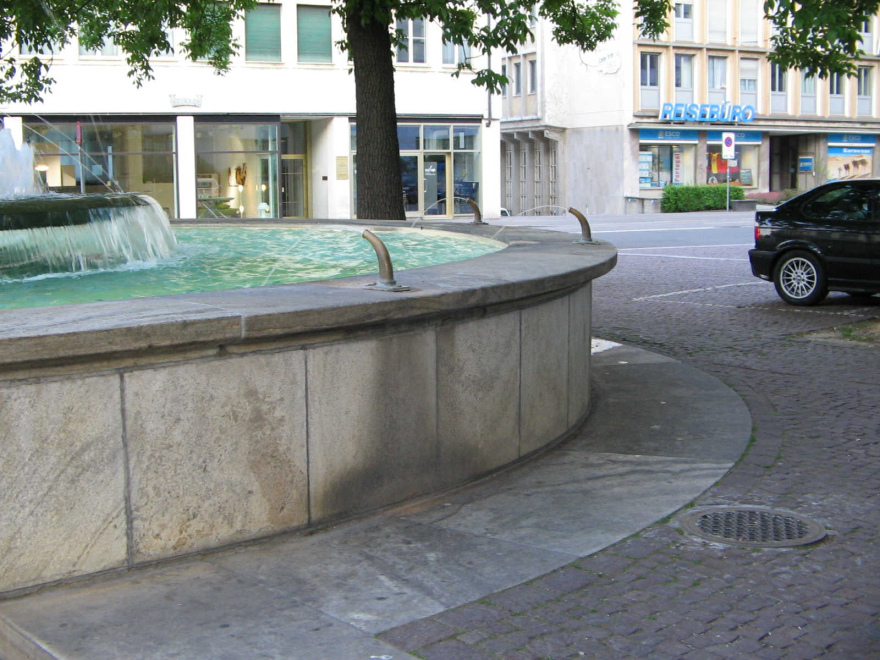 Der Brunnen ist hervorragend konzipiert. Das Sprudeln des Wassers gehört eigentlich dazu, aber wegen des Lärms der Strassen und der grossen Kreuzung hört man das Sprudeln kaum. Der Brunnen ist also am falschen Platz, und man kann den Brunnen nie richtig geniessen.