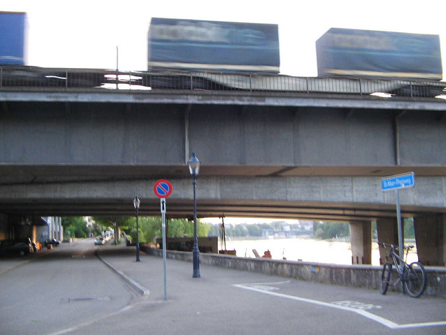 Danach führt der Spaziergang an der Grenzacherstrasse entlang zurück, dann über den Eisenbahnweg und unter der Schwarzwaldbrücke durch in den Solitude-Park, der wiederum von der Autobahn beschallt ist und dadurch akustisch zerstört ist.