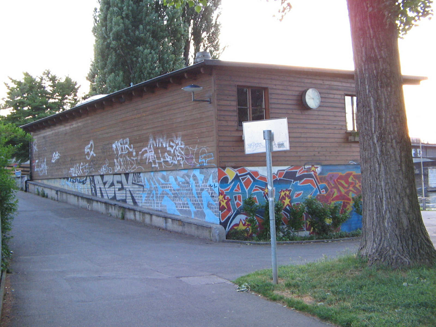 Basel, Solitudepromenade, Sicht auf die Badi