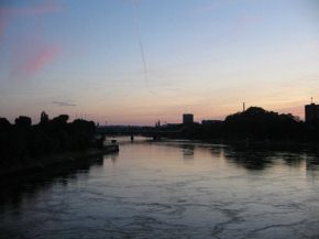 Birsfelden, Schleuse, Sonnenuntergangsfoto mit Sicht