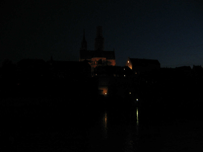 Basel, beleuchtetes Münster am späten Abend