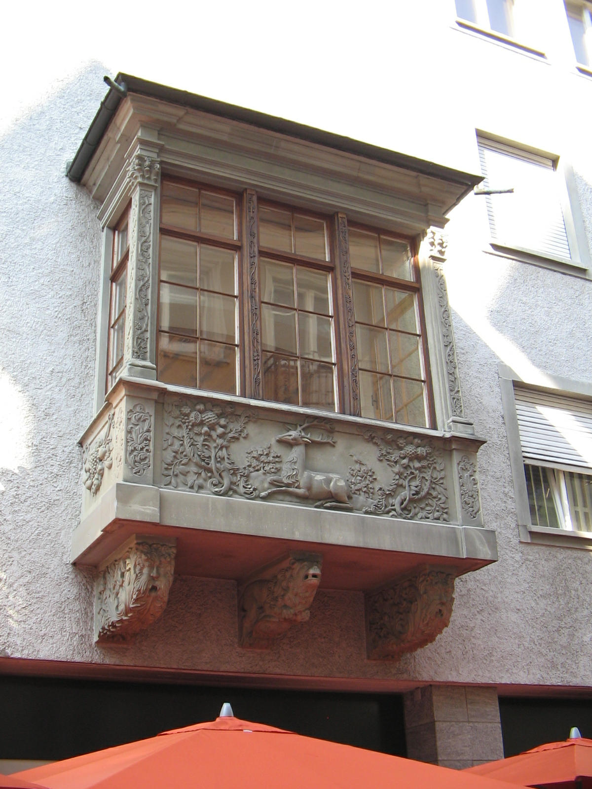 Kugelgasse 10, Holzerker unterer Teil, Relief 01