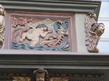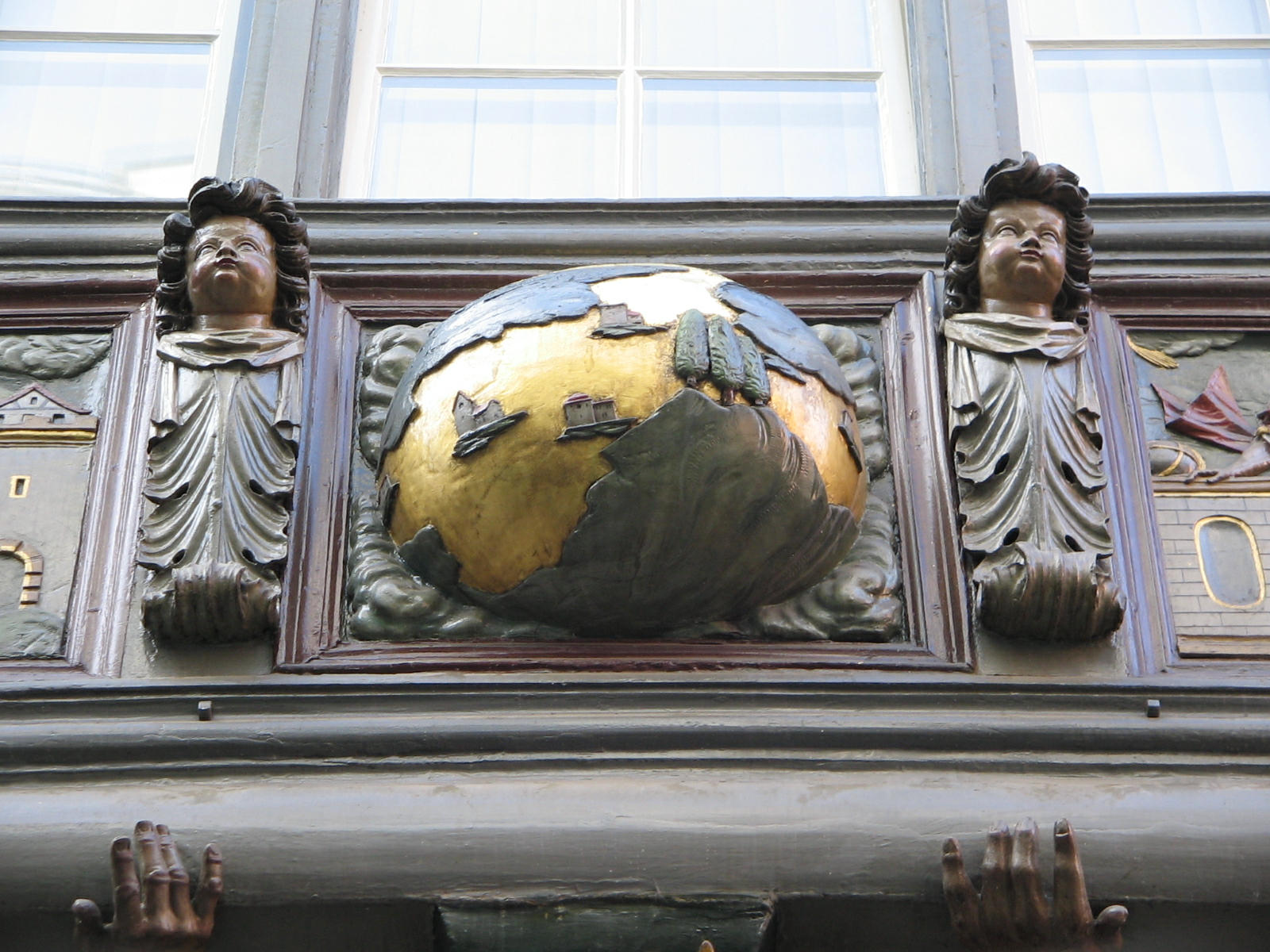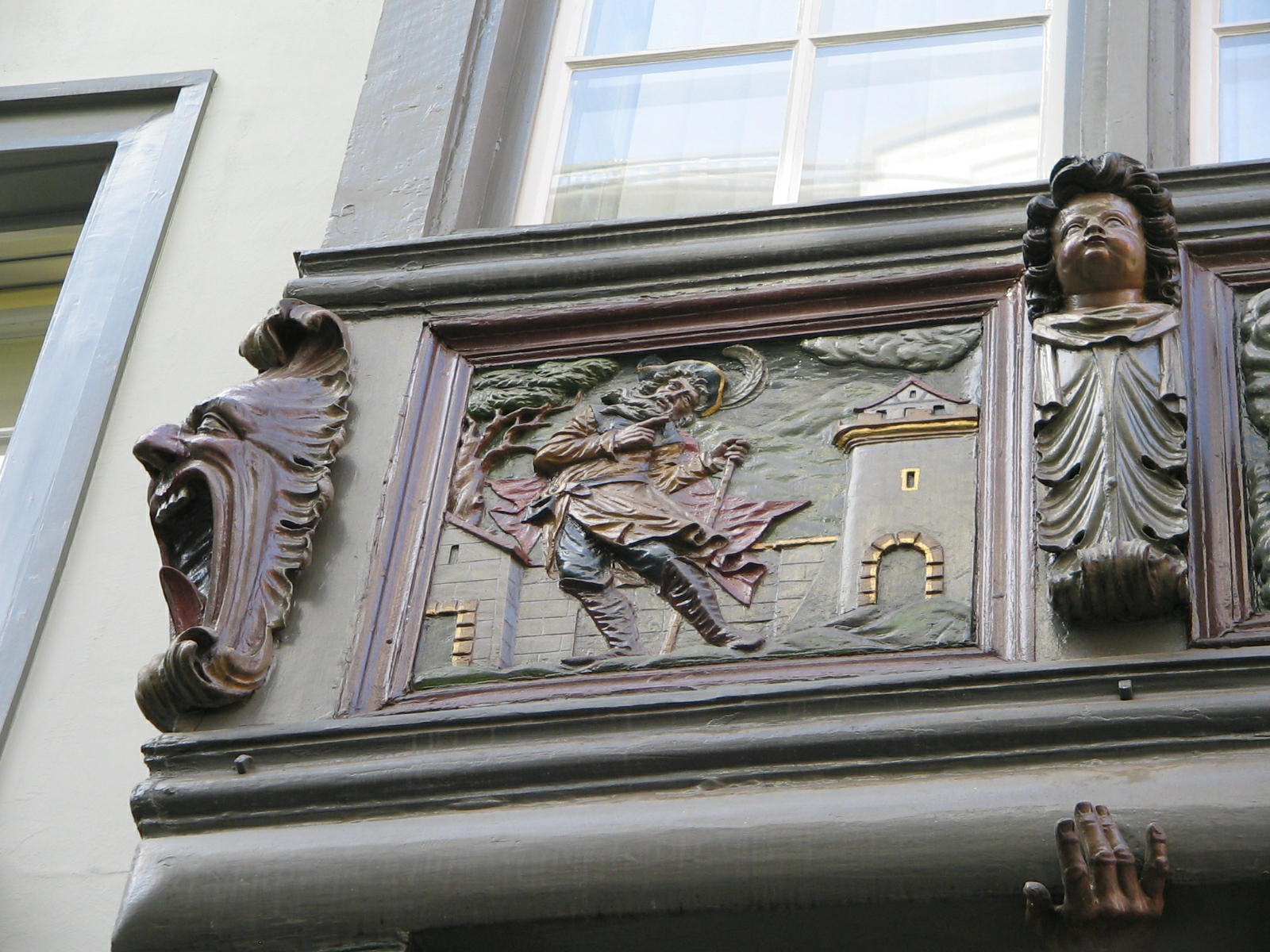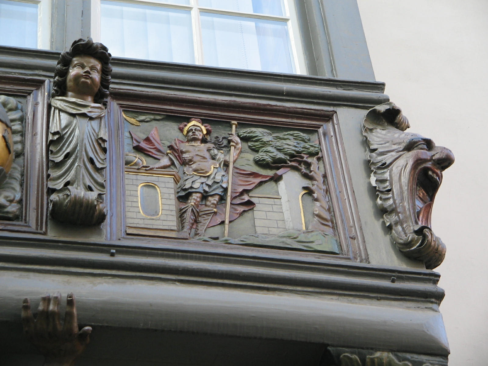 Kugelgasse 10, Holzerker, Trägerfiguren
