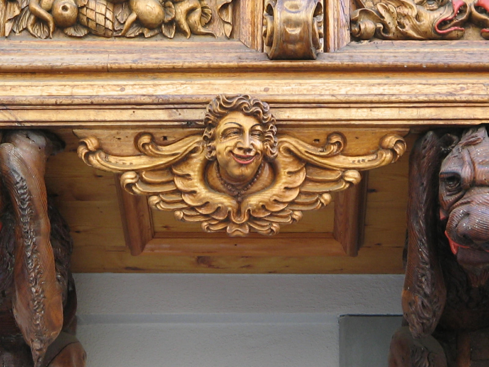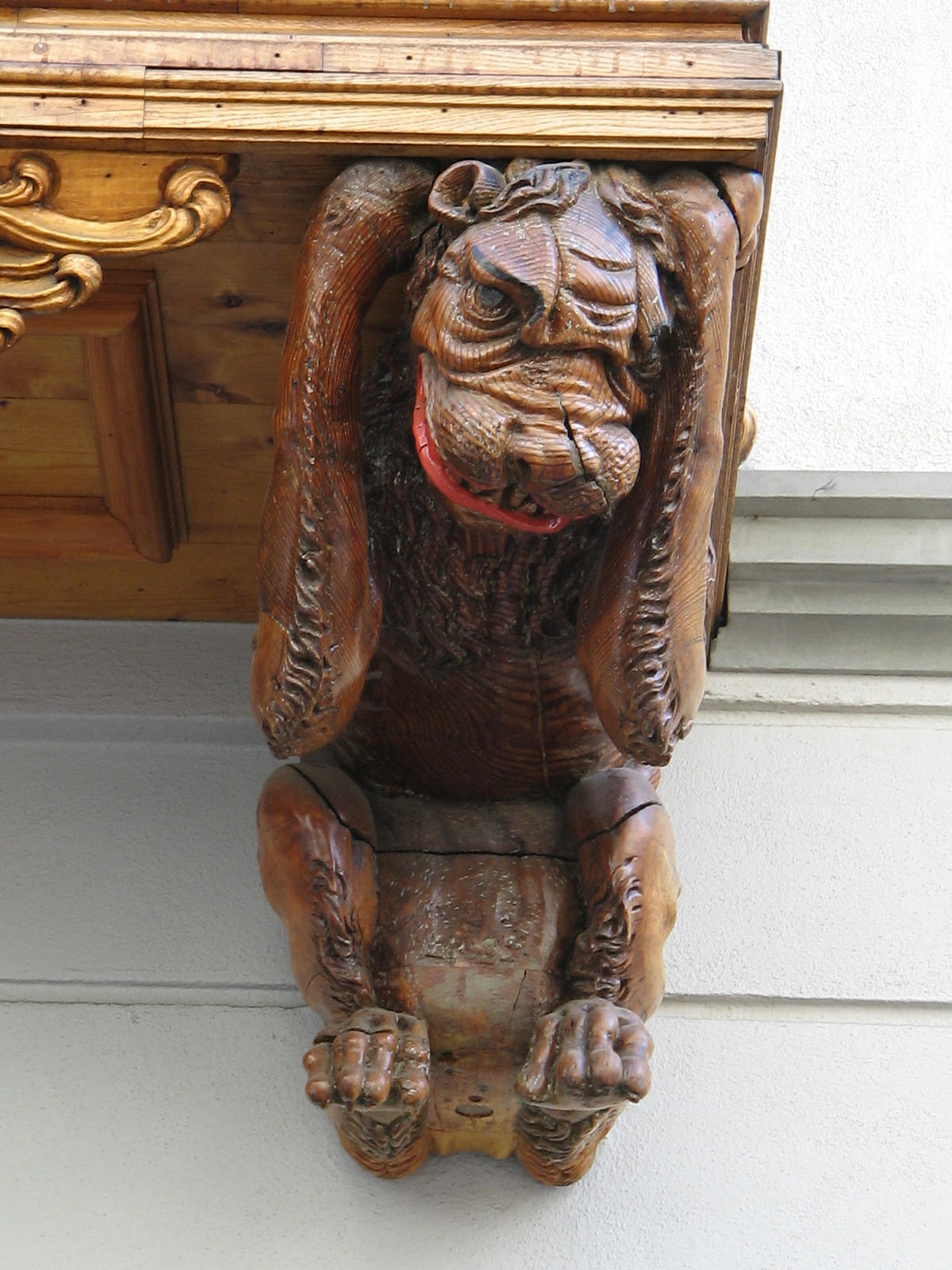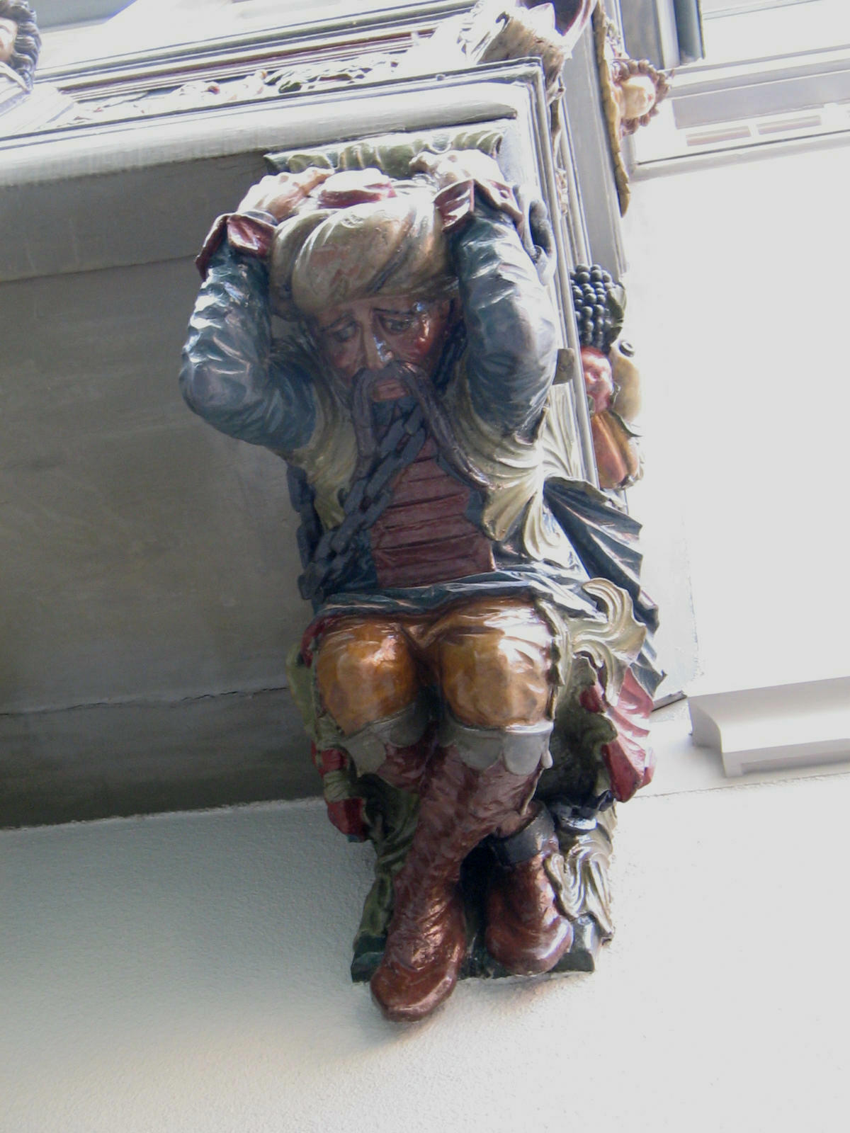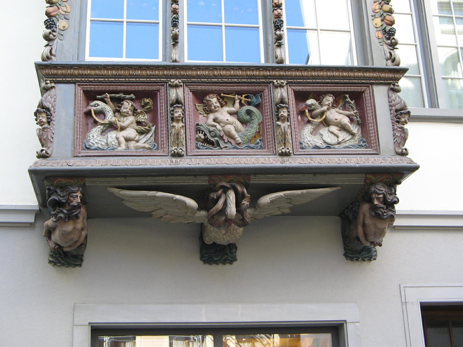 Kugelgasse 10, Holzerker, Trägerfiguren