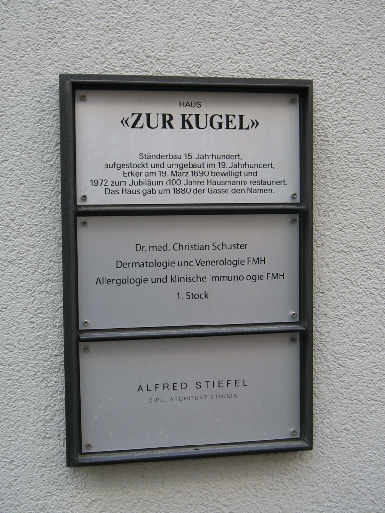 Kugelgasse 10, Haus "zum Schwanen", Tafel