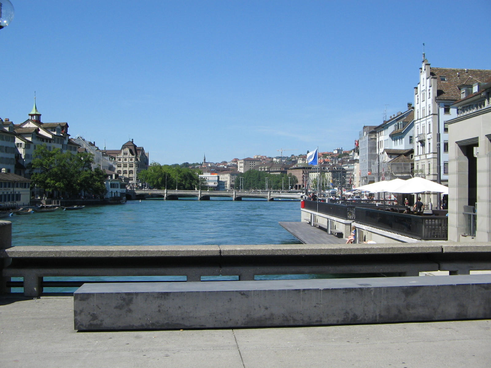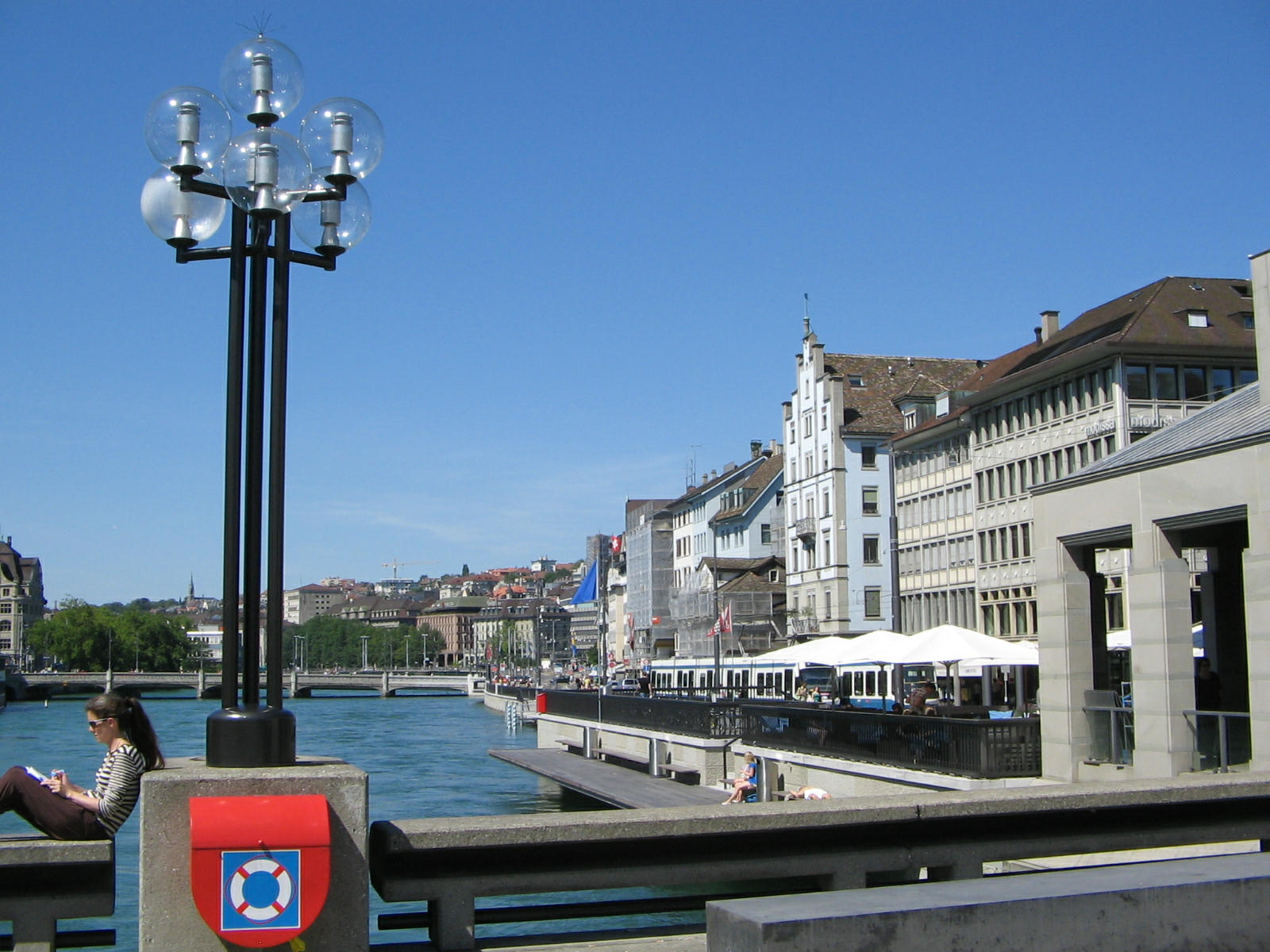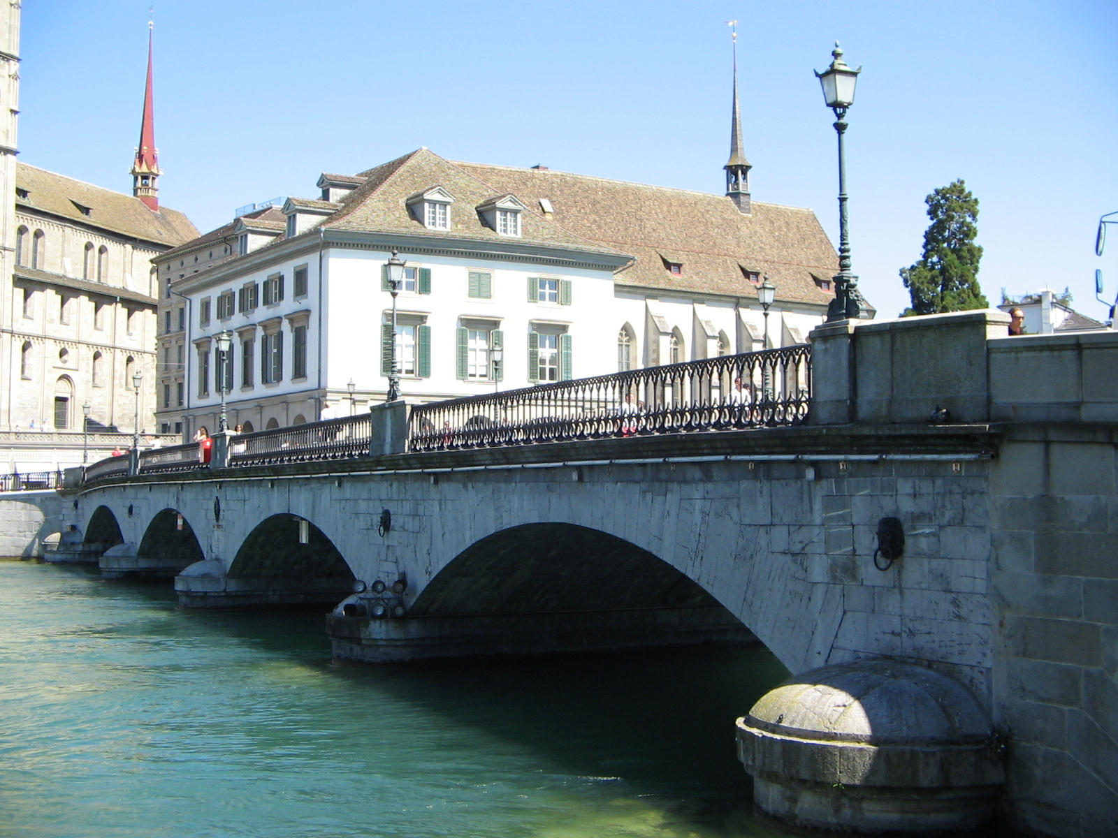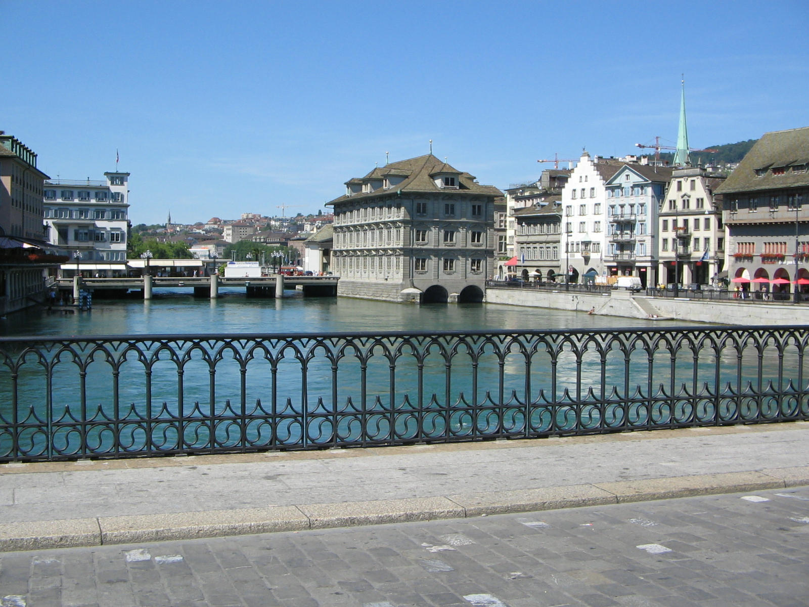 Zurich, Rudolf Brun Bridge, sight of Limmat Quay (01)