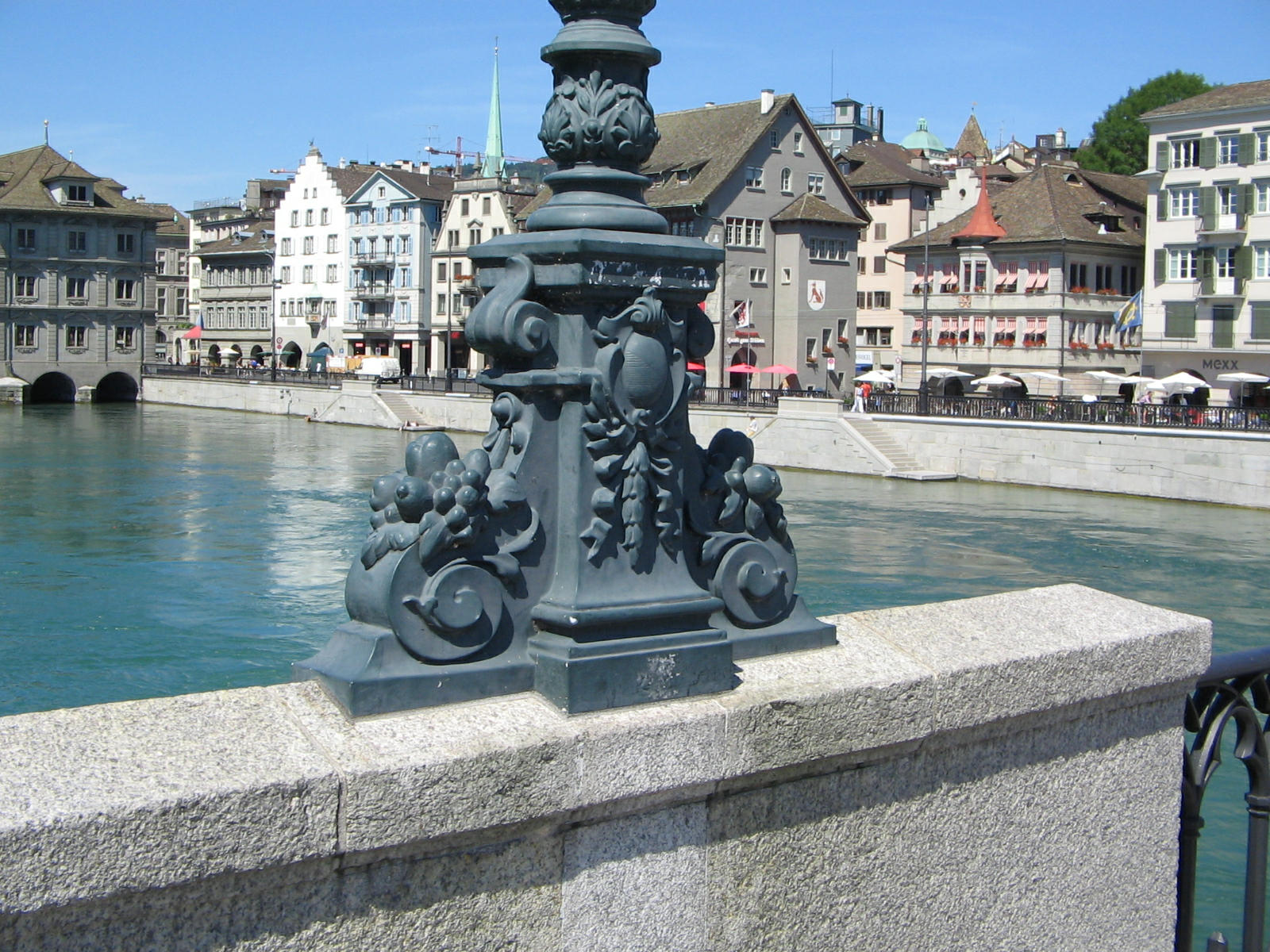 Zurich, Rudolf Brun Bridge, balustrade in the sunshine