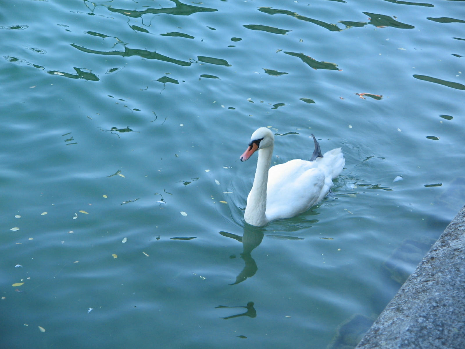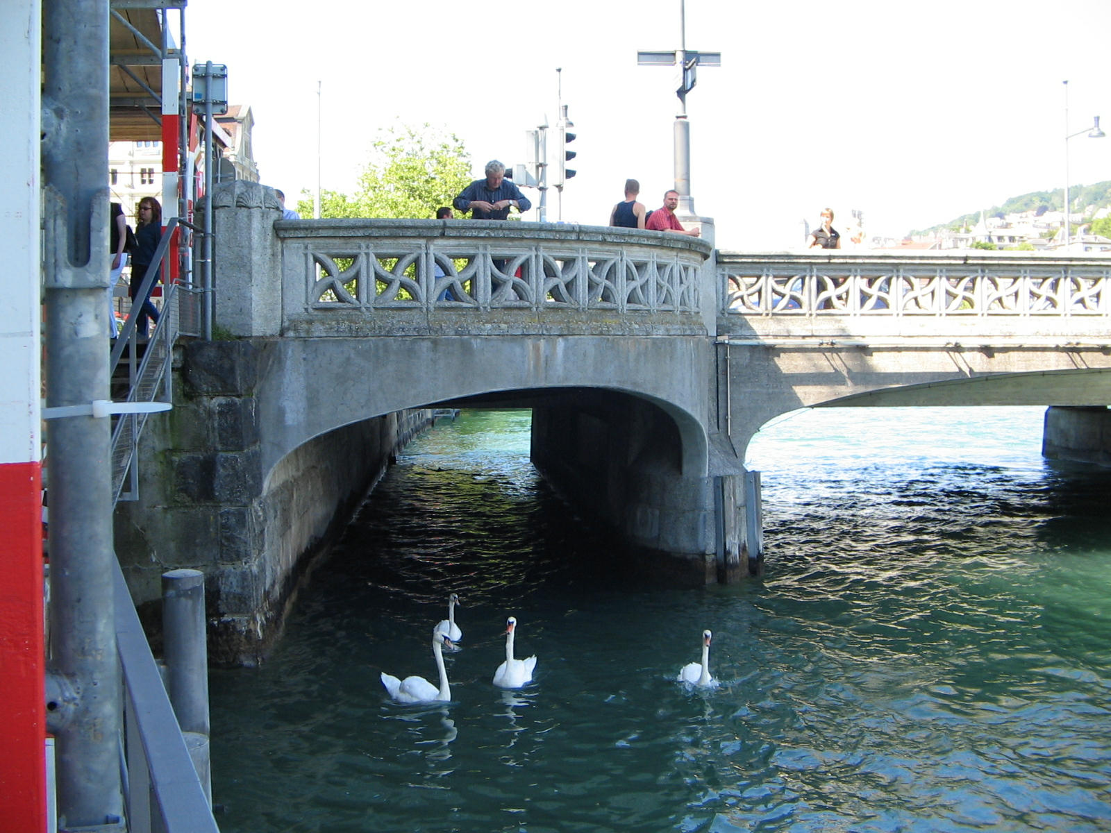 Schipfe and Rudolf Brun Bridge, there is a man feeding the swans