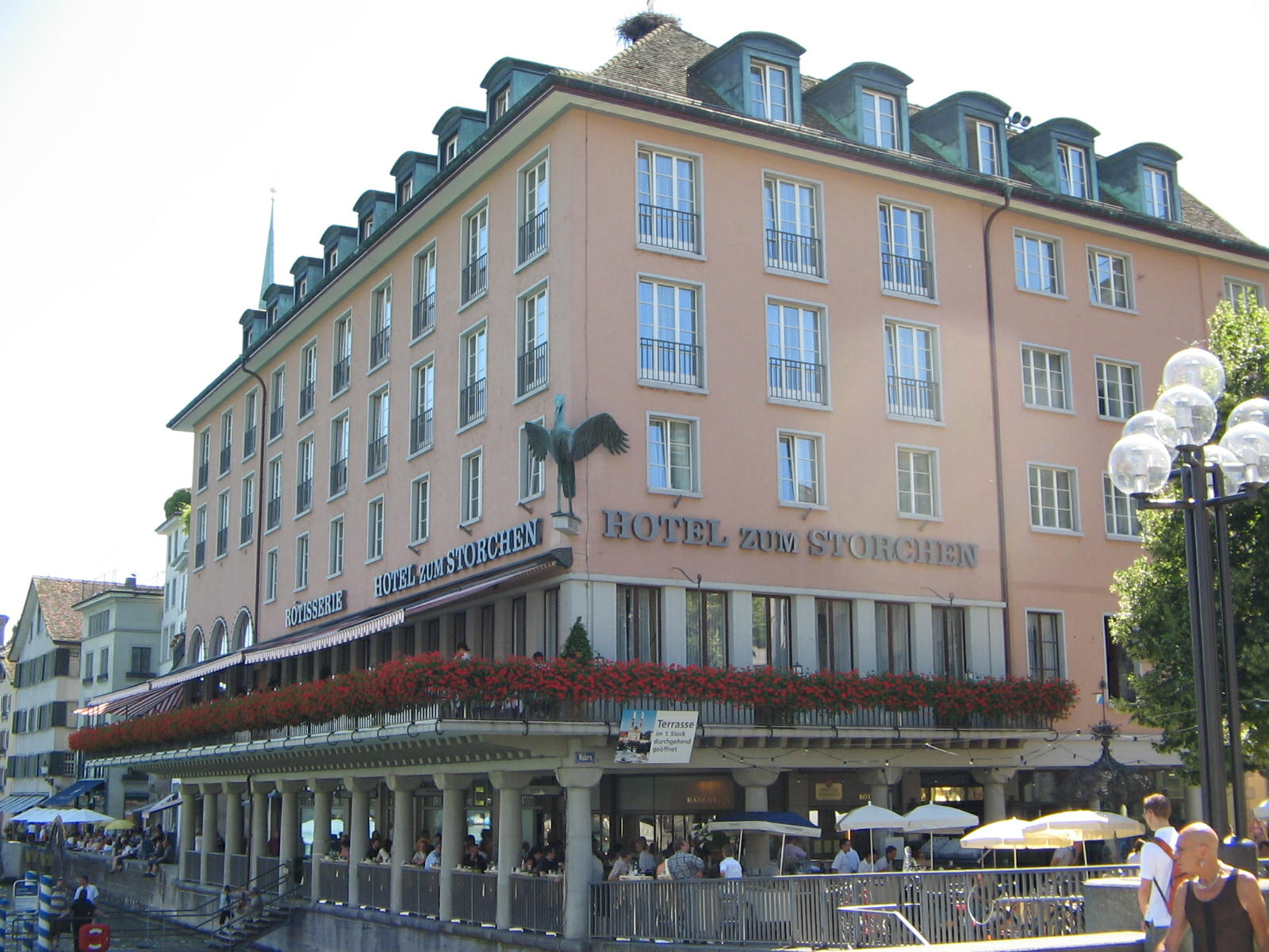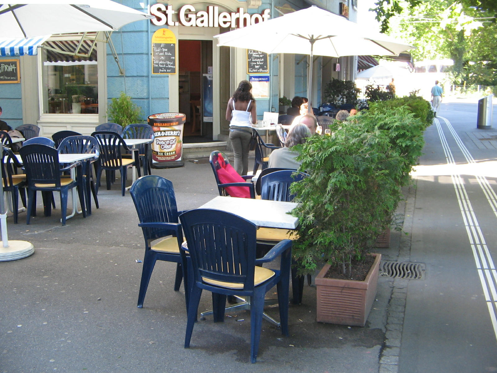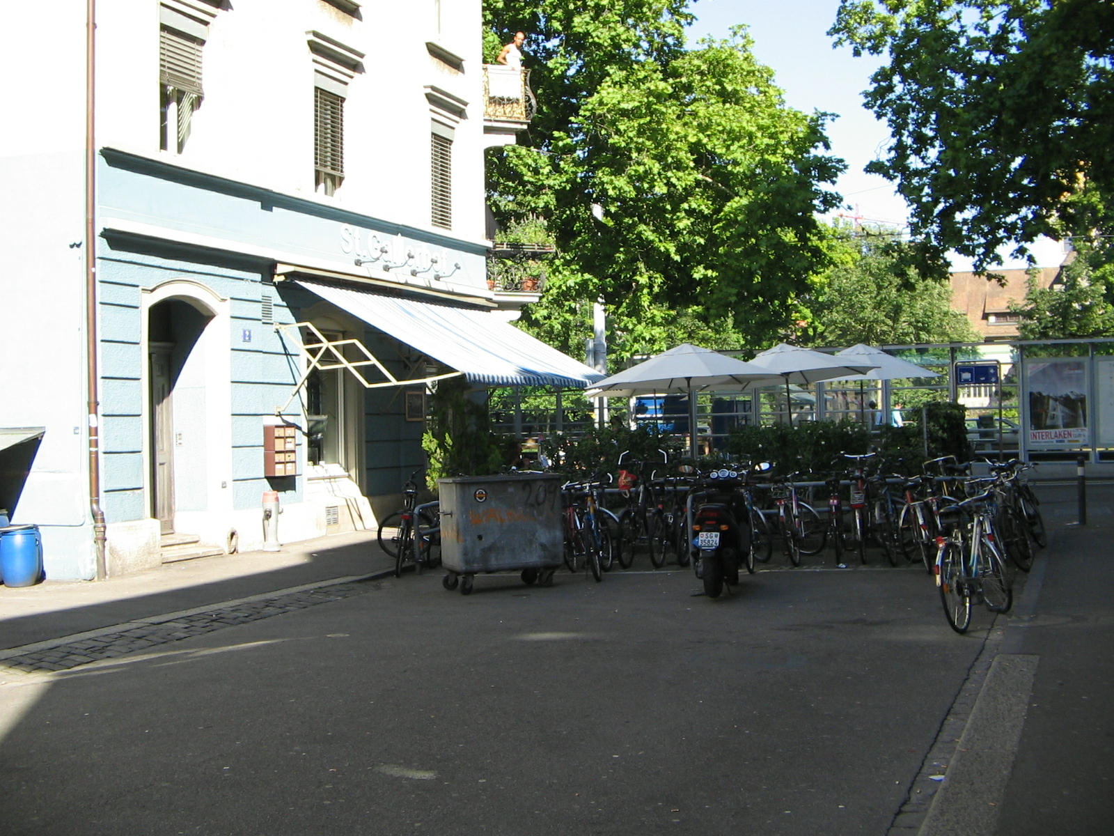 Zurich, Konrad Street, restaurant St. Galler Hof (St. Gallen Yard), terrace of the restaurant
