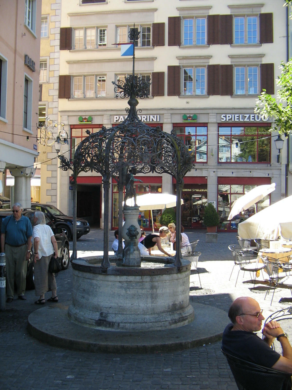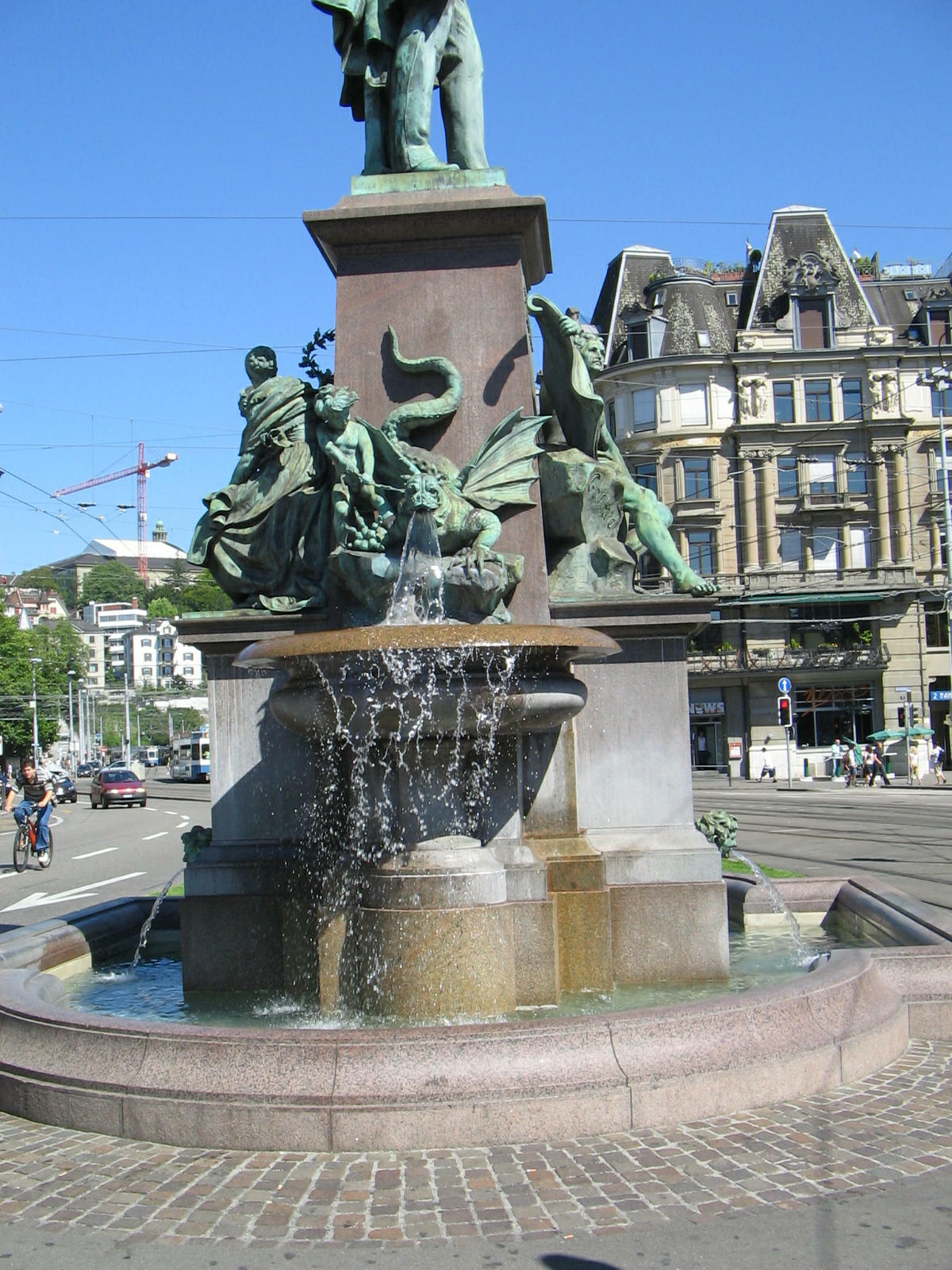 Alfred Escher Fountain, water coming out from a boy's head