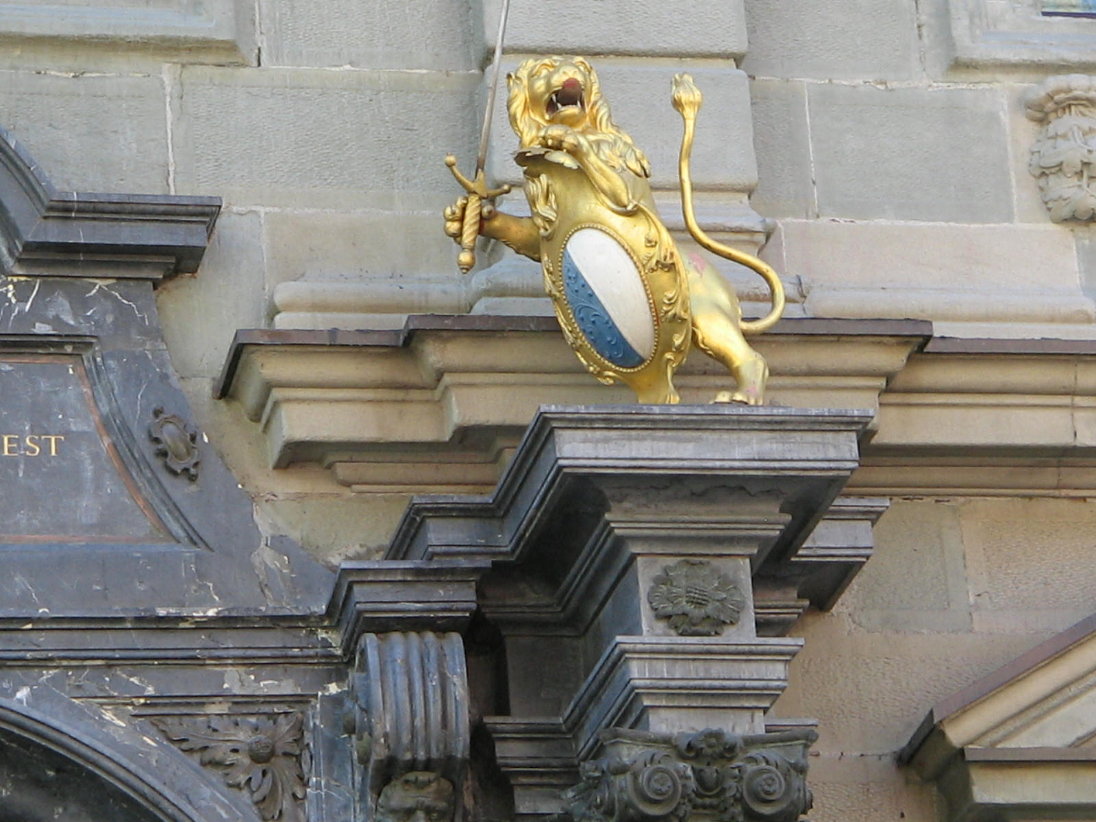 Zurich Main Station, group of figures over the entry, zoom