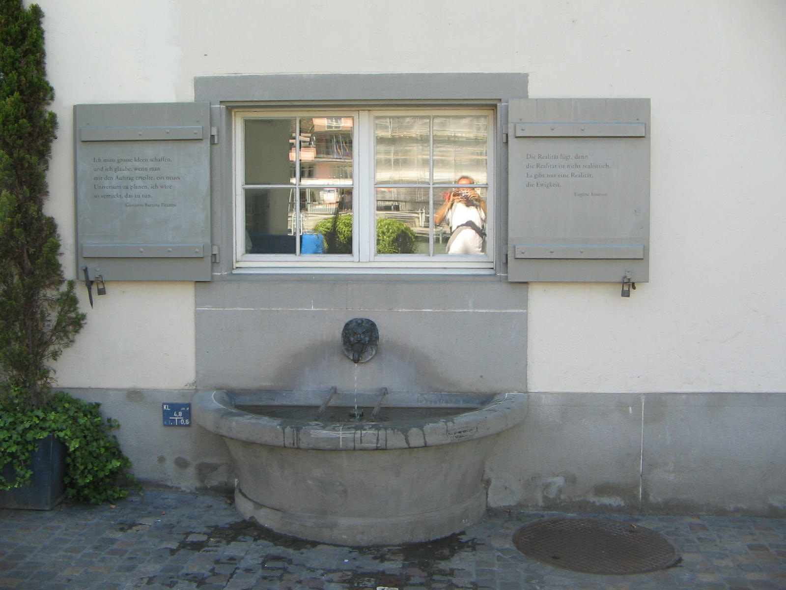 Zurich, Schipfe, window with a fountain, with window shutters with lyrics