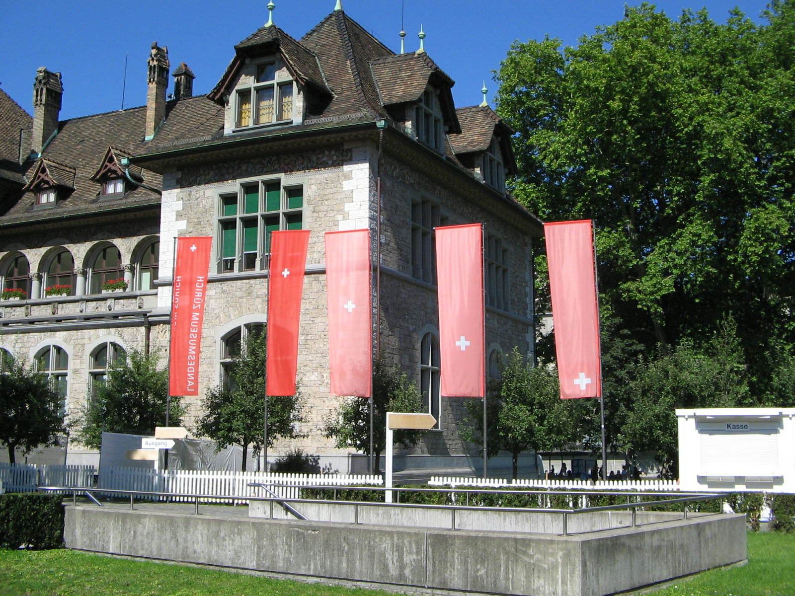 Zurich, State Museum, Swiss flags at the entrance