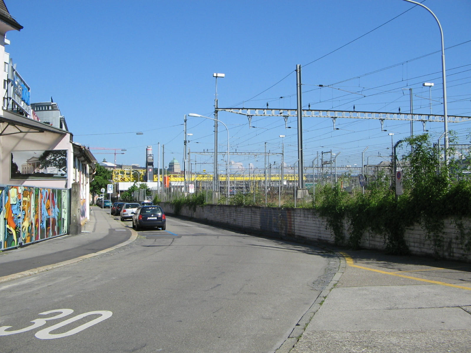 Zurich, Zollstrasse (Customs Street) with the tracks of Zurich Main Station aside