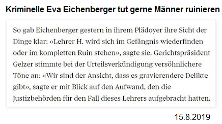 Basel 15.8.2019: Appellationsgericht mit neuer Entlastung für Lehrer H. in 9 Punkten - kriminelle Zionistin Eva Eichenberger erfindet "Gefängnis" und "Ruin":