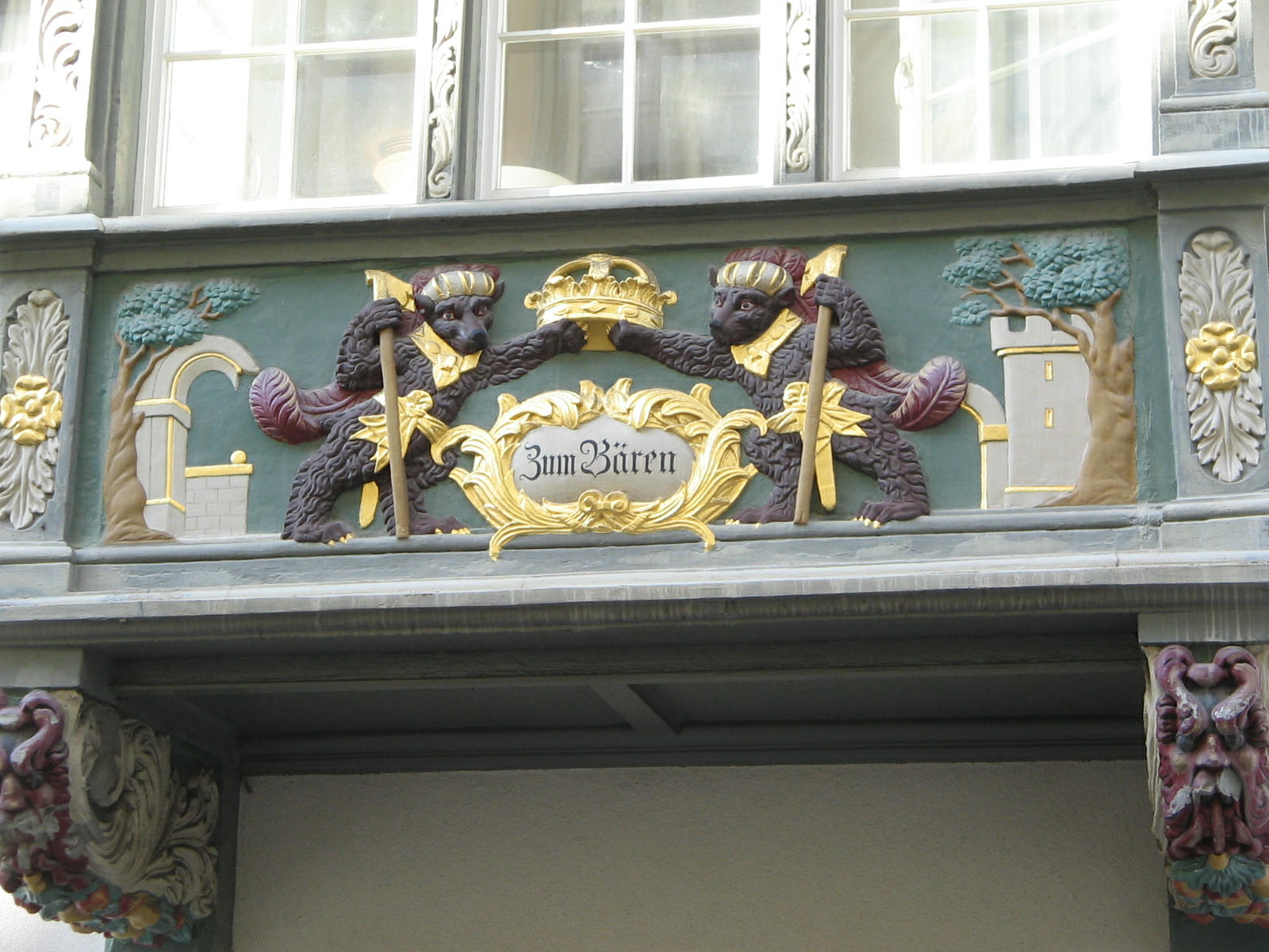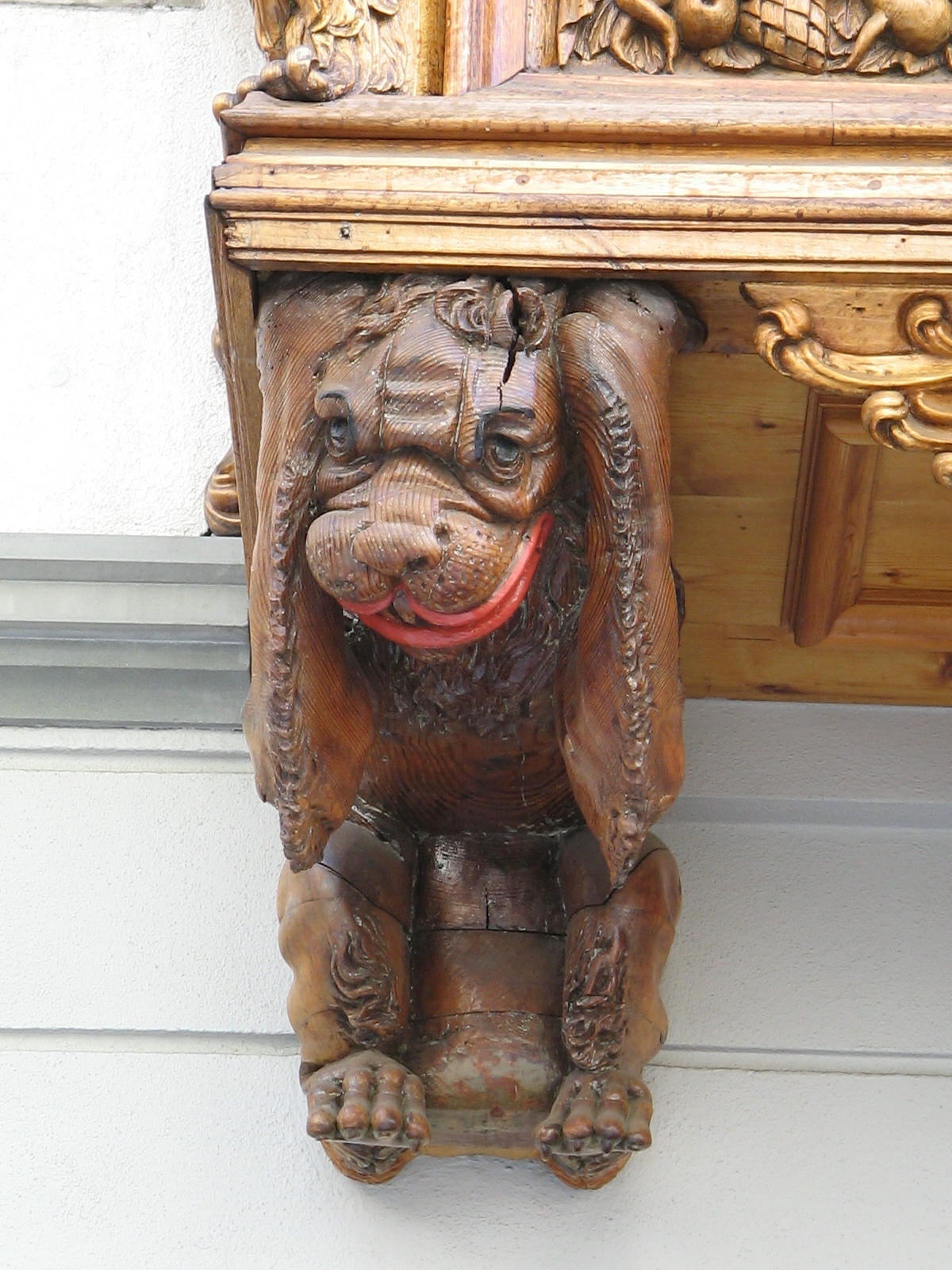 Kugelgasse 10, Holzerker, Trägerfiguren