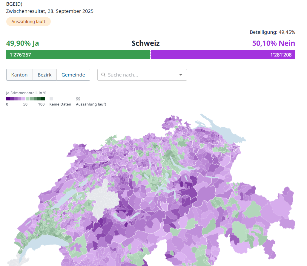 Resultat knapp ist wie hier 47.5% Ja, 52.5.%