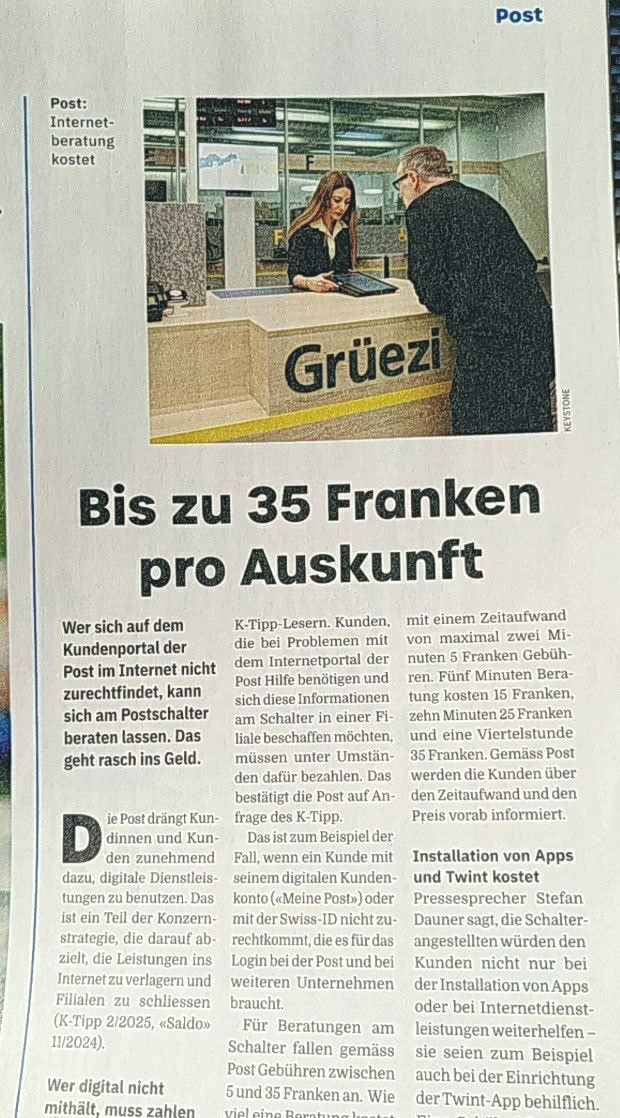 Schaltersteuer zum Zahlen am Postschalter, sondern