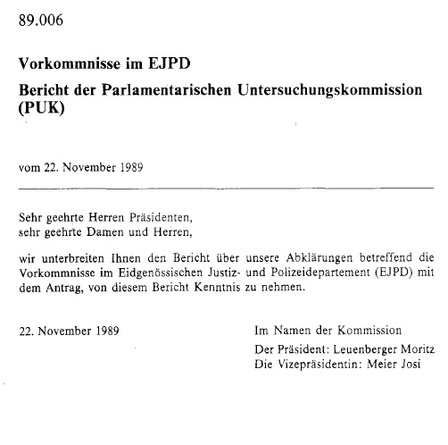 22.11.1989: PUK-Bericht zum Abgang von Bundesrätin Kopp