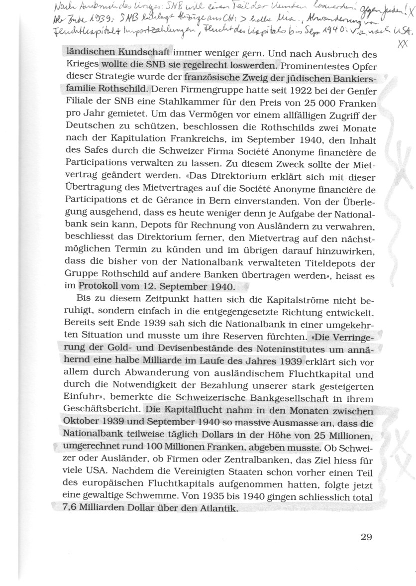 ["Amerikanische" Gerüchte gegen schweizer Bankenfilialen - Rückfluss von Geldern in die Schweiz ab Ende 1940 - jüdische Gelder werden offiziell an amerikanische Besitzer überschrieben - "USA" blockiert alle europäischen Guthaben im Juni 1941]