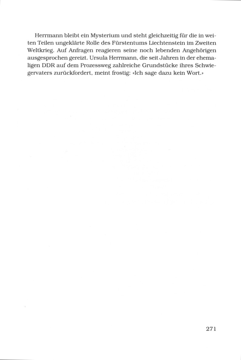 Herrmann bleibt ein Mysterium und steht gleichzeitig für die in weiten Teilen ungeklärte Rolle des Fürstentums Liechtenstein im Zweiten Weltkrieg. Auf Anfragen reagieren seine noch lebenden Angehörigen ausgesprochen gereizt. Ursula Herrmann, die seit Jahren in der ehemaligen DDR auf dem Prozessweg zahlreiche Grundstücke ihres Schwiegervaters zurückfordert,meint frostig: "Ich sage dazu kein Wort."