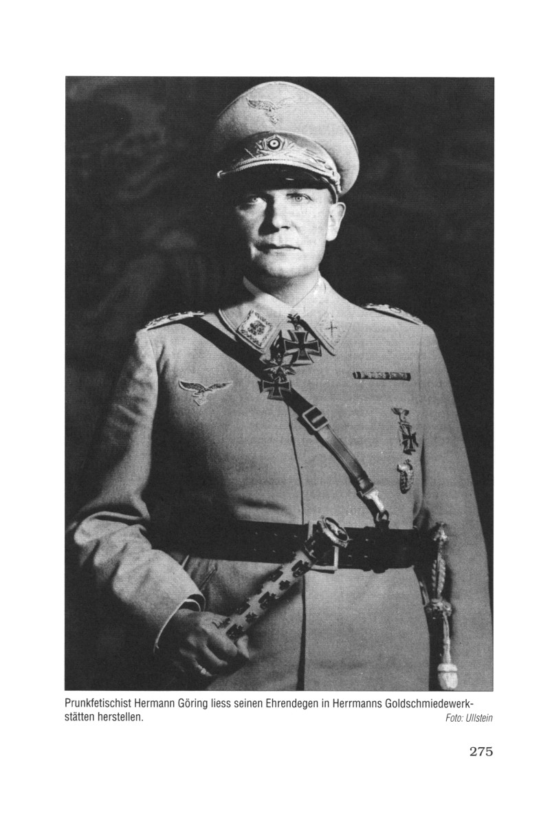 Seite 275: Göring: Prunkfetischist Hermann Göring liess seinen Ehrendegen in Herrmanns Goldschmiedewerkstätten herstellen [seine Befehle zur "Verwertung" von Raubschmuck raubten allen Juden in Deutschland jeden Schmuck, und in der Schweinz (Schweiz) profitierten davon die Schmuckhändler, die "Verwertung" hatte ihr Zentrum in in Luzern].