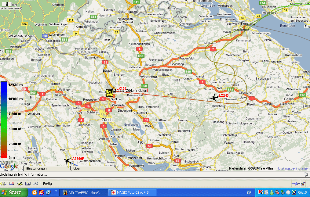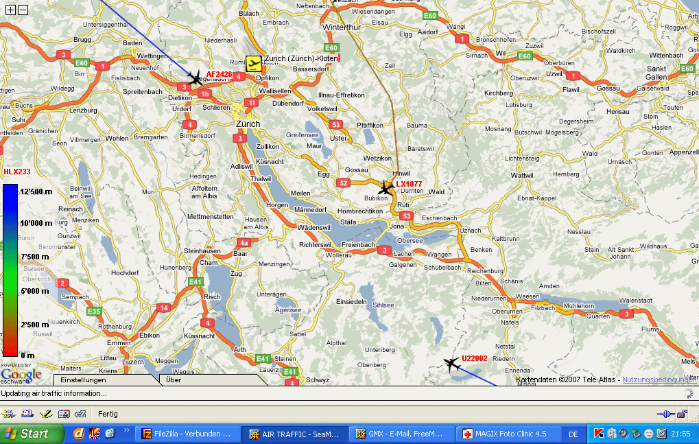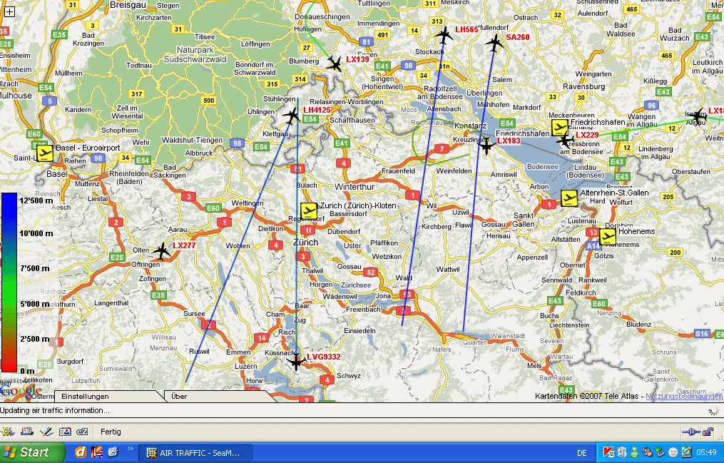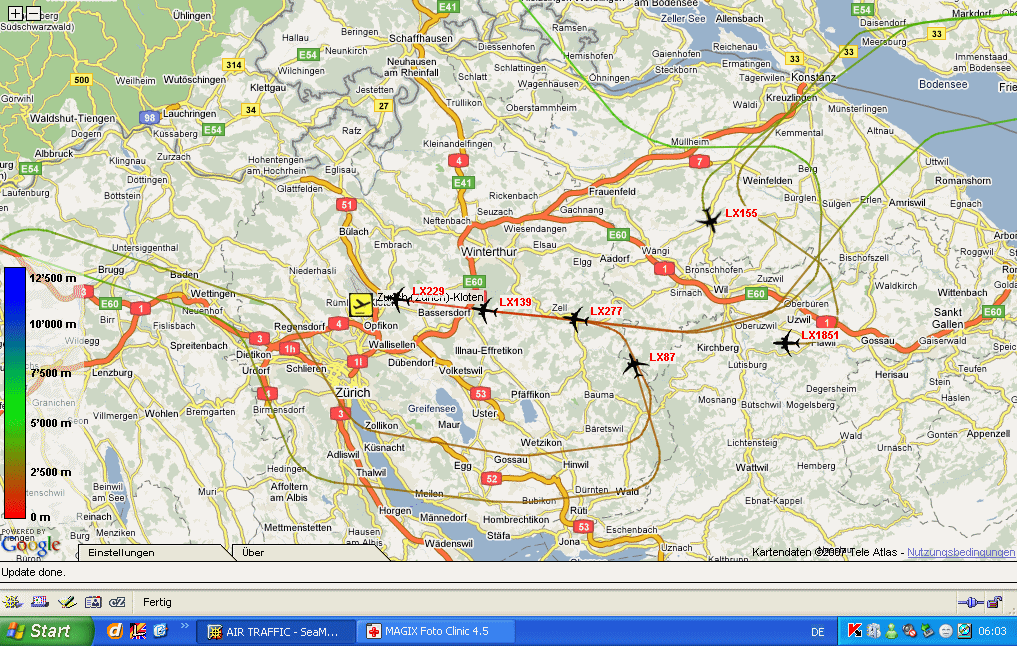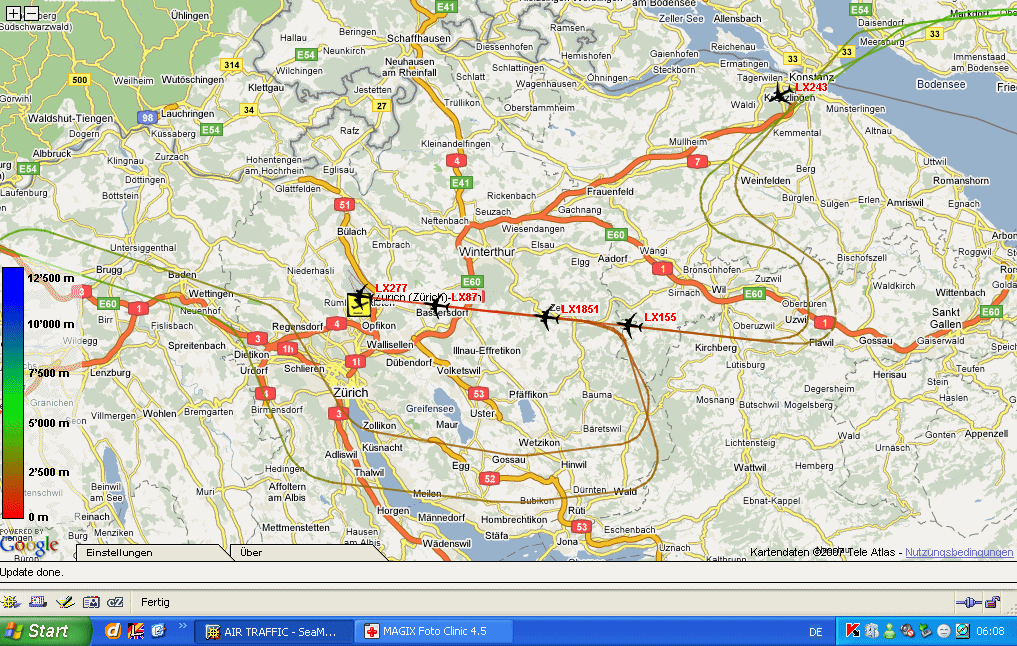 und von Weste her sind die Flugzeuge der Flüge LX277
