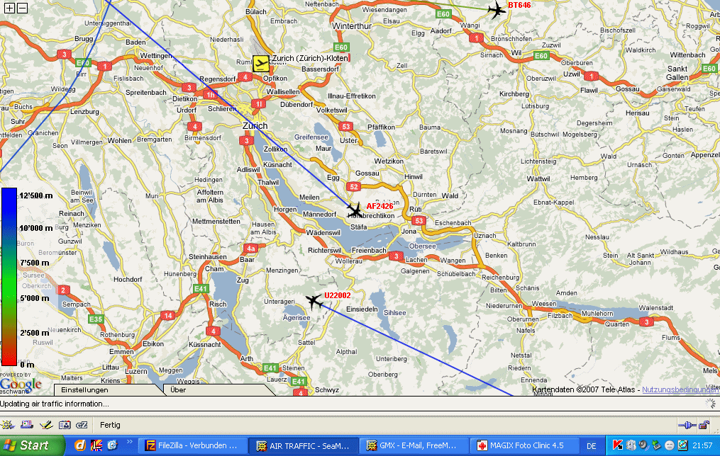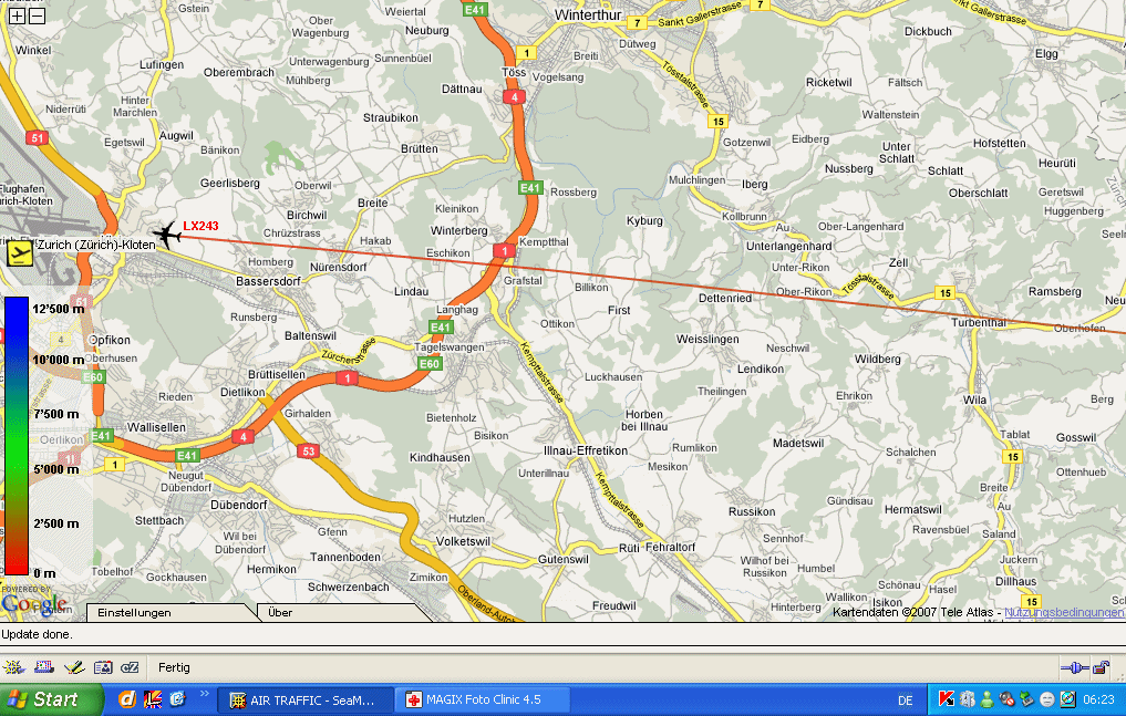 Flugschneise Turbenthal - Kemptthal - Bassersdorf -