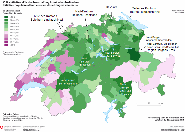 KRIMINELLE NAZI-SCHWEIZ: HETZE DER SVP GEGEN MENSCHENGRUPPEN SEIT 20 JAHREN - EINE NEUE LANDKARTE