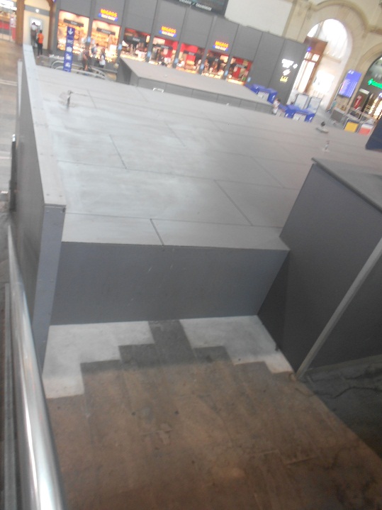 Rampe vom Bahnhof SBB zur Passarelle halb fertig 1,2 - WIESO darf der Migros die wichtigste Rampe im Bahnhof SBB in Basel blockieren???