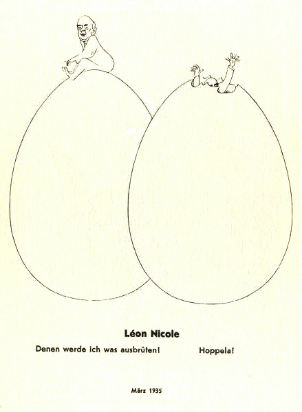 (orig.: Gegen rote und braune Fäuste. 380 Zeichnungen, gesammelt aus den Nebelspalter-Jahrgängen 1932 bis 1948). E. Löpfe-Benz-Verlag, Rorschach 1949 Comment In Switzerland the Hitler