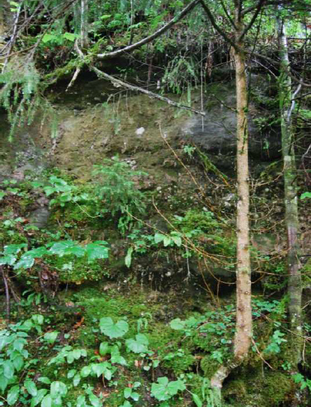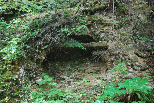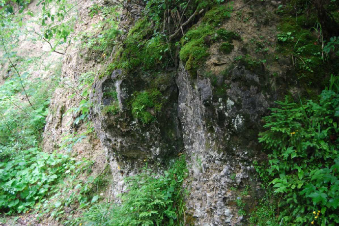 Entlang des nordwestlichen Weges kann man an der Basis künstliche Eingriffe in das Gelände finden ("angegrabener Hang").