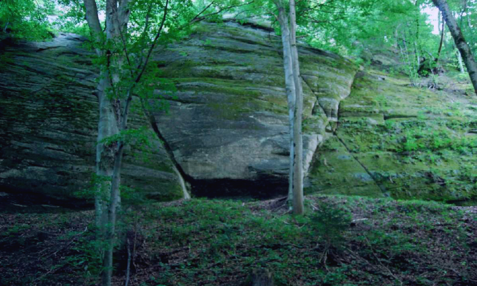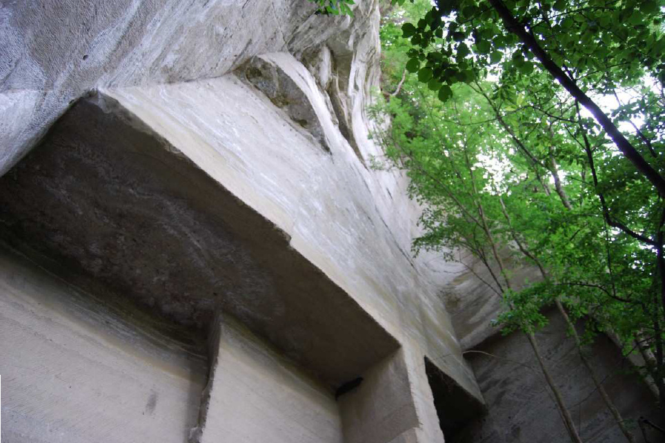 Emmental oder Entlebuch, geschnittene Felswand schräg nach innen geneigt ohne Ortsangabe [7] - Schnitte in den Fels hinein gibt es viele in Cusco Sacsayhuamán - Index